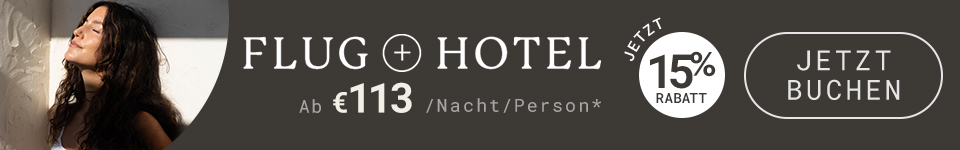 ORDER, WENN DU ES VORZIEHST, SPARE MIT EINEM SPEZIELLEN FLUG + HOTEL-PAKET, JETZT FÜR BEGRENZTE ZEIT MIT 15% RABATT